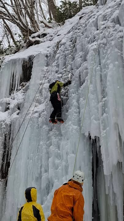 寒気が次々と入ってきたのでお正月明け、ハモズシにアイスクライミングに行ってきた。氷は去年ほど発達していなくて、正月でもアイス目当てのクラーマーが何パーティーもいた。ポカラさんもお客さんを連れてやって見えた。ロープを張ったところは垂直離陸が難しかったが、それでも楽しくやれた。ドライのロープは氷がついても固くならず扱いやすかった